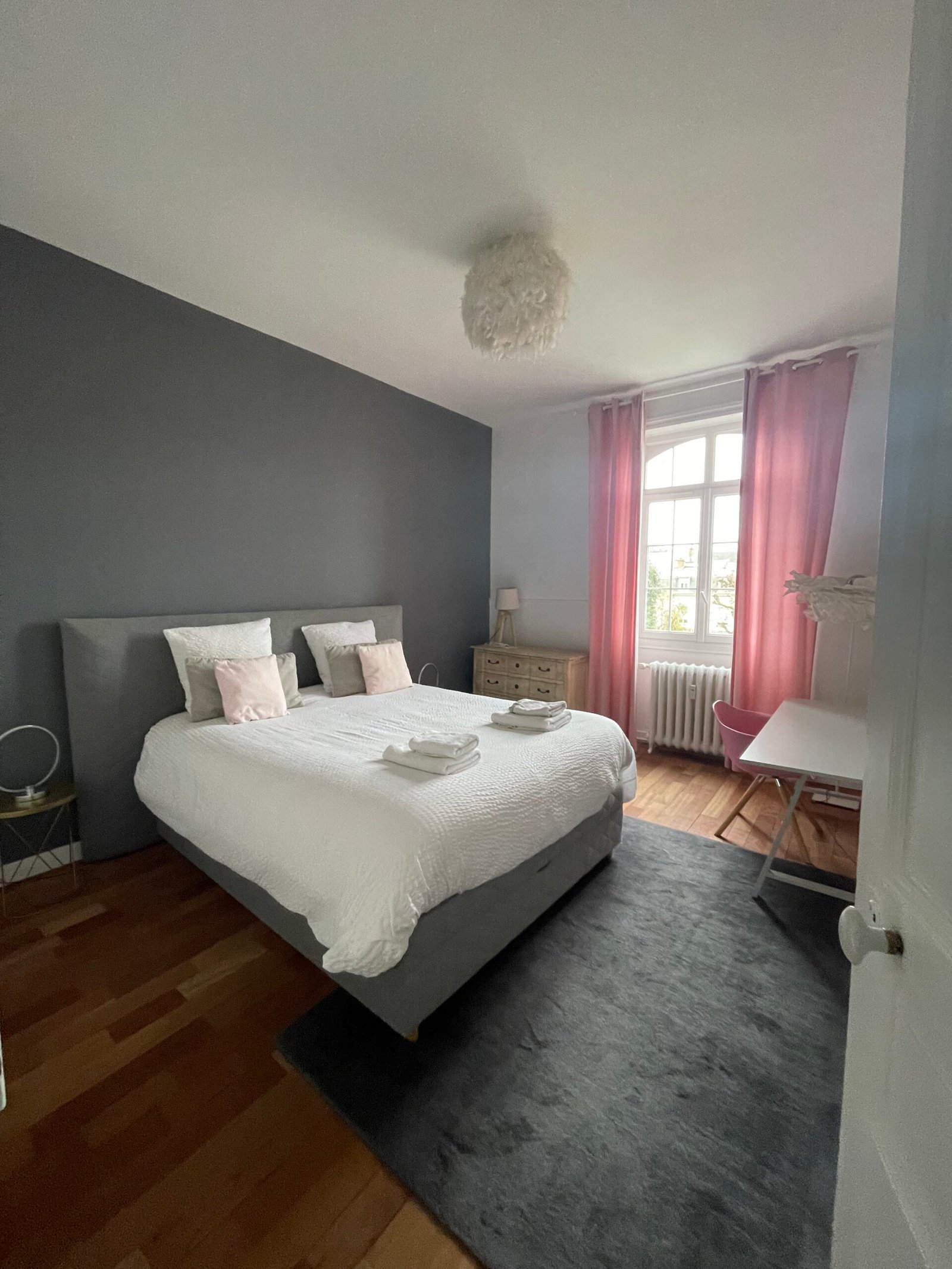 Vous profitez d’un appartement spacieux et lumineux, au calme absolu, en plein hyper centre de Reims. Il dispose de chambres luxueuses avec lits king size, de deux salles de bain, d’un salon confortable, d’une cuisine entièrement équipée et d’un jacuzzi pour des moments de détente privilégiés.